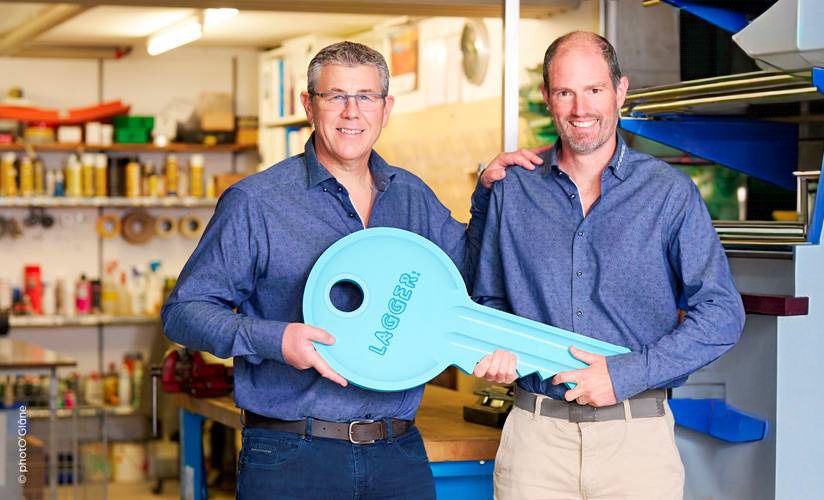 Guy Lagger remet la clé de l'entreprise à Frédéric Suard, nouveau propriétaire de LAGGER SA dès janvier 2025